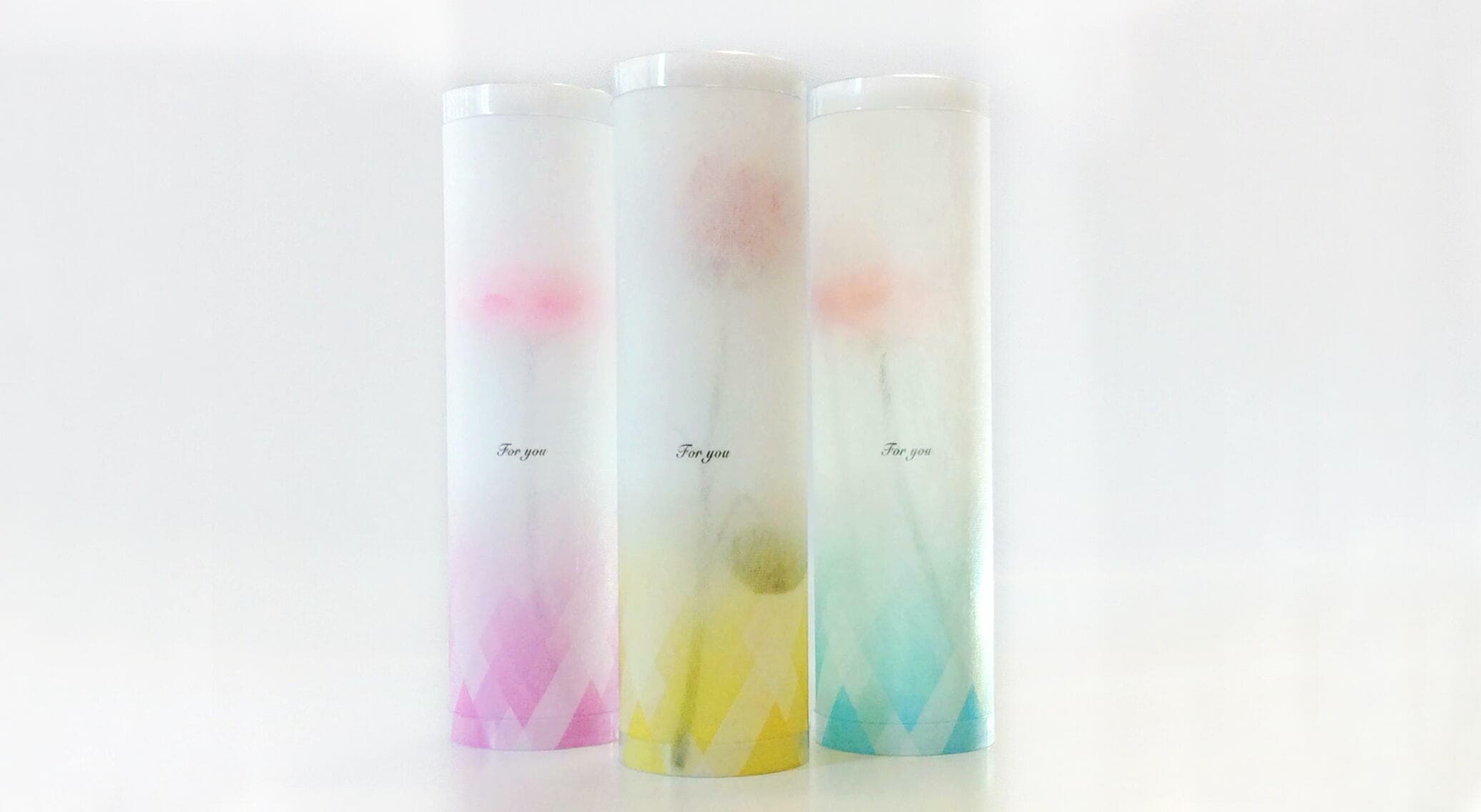 透明なPETクリアーボードに特殊な製法でPET不織布を貼りつけ和紙を貼ったような感覚を表現したペーパークリアーボード材を利用した円筒ケース。缶の重量の約7分の1のため重量軽減となり、購入顧客の廃棄の容易差を手伝う。今までの完全透明な円筒ケースに薄らと商品を見せる独特な付加価値表現で、商品価値を上げるプロダクト。金属缶ではロット、納期の対応が出来ない時、または新たな円筒ギフトの見せ方で新商品を発売したいなど、今後顧客のニーズを具現化して行く。直径70mm~205mmパイ 高さ300mmHまで対応。この独特な存在感は見て触れなければわからない。円筒ケースの新しい感覚としての存在感を表現。