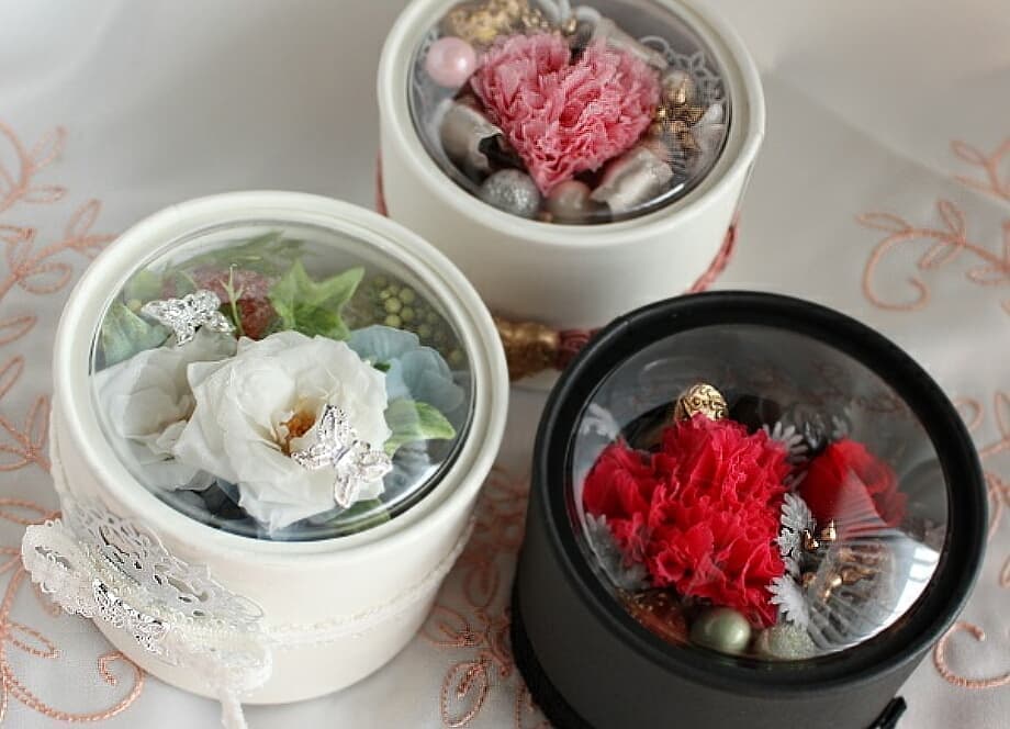 紙管容器のトップにドーム状のPETを装着した。独特な顔を表現することができる。アイキャッチ効果のある紙管容器。世界的著名なフローリスト、その他アパレル企業ブランドより指定を受ける。2015年、ワシントンDCの日本大使館にて開催された天皇陛下誕生レセプションで伊勢茶を入れ各国の要人に配布。2016年伊勢志摩サミットで三重県の伊勢茶を世界中に紹介するパッケージとして唯一となり、外務省及び三重県サミット指定マークを付け公式採用。各国の要人が持ち帰られました。またプレス各社に配布されドームカンが世界中に配信された。トップの持ち型形状はサークル型がベースとなる。他にロゴマークなど別形状も承ります。(左側ハートが参考事例)